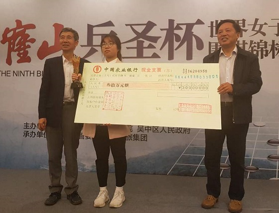 ▲ 최정 9단(가운데)에게는 우승상금 30만 위안이 주어졌다.