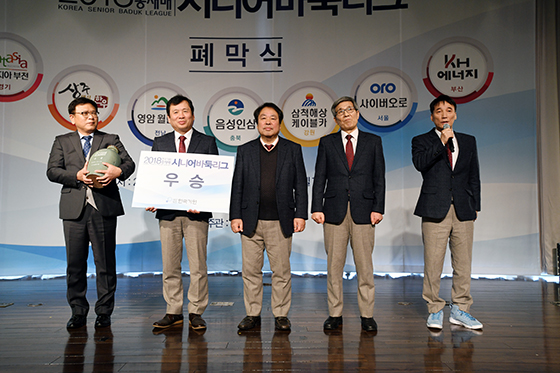 지난 5월 17일 선수선발식을 시작으로 5개월의 대장정을 마친 ‘2018 한국기원 총재배 시니어바둑리그’는 경기 부천판타지아(감독 양상국), 경북 상주명실상감한우(감독 이홍열), 전남 영암월출산(감독 한상열), 충북 음성인삼(감독 박종열), 강원 삼척해상케이블카(감독 윤종섭), 서울 사이버오로(감독 노영하), 부산 KH에너지(감독 김성래) 등 7개팀이 출전했다. 더블리그(14라운드)로 열린 정규리그는 총 42경기 126국으로 3판 다승제(제한시간 30분, 초읽기 40초 5회, 전 대국 동일)로 펼쳐졌다. 정규리그를 통해 포스트시즌에 진출한 상위 4개팀을 가렸고 준플레이오프와 플레이오프, 챔피언결정전 순으로 포스트시즌을 벌여 KH에너지가 통합 우승을 차지하며 대단원의 막을 내렸다.