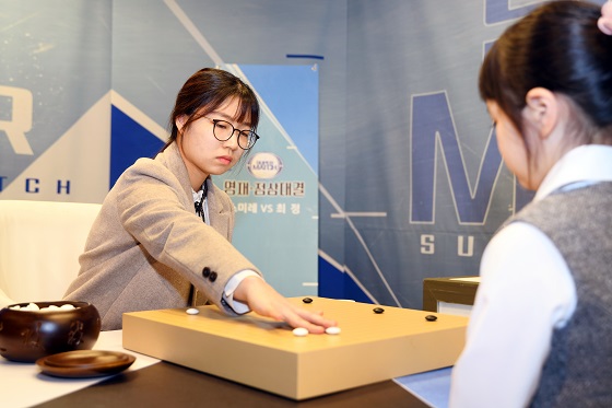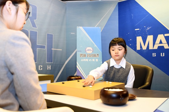 23일 오후 2시 서울 성동구 한국기원 1층 바둑TV스튜디오에서 열린 ‘슈퍼매치 영재 정상대결’에서 최정 9단이 스미레 초단에게 180수 만에 백 불계승했다.