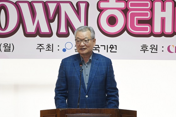 ▲축사를 하고 있는 윤영달 크라운해태 회장인사말 후 열린 시상식에서 윤영달 크라운해태 회장은 박하민 5단에게 우승 트로피와 3000만원의 상금을, 준우승한 나현 9단에게 준우승 트로피와 1200만원의 상금을 각각 전달했다.