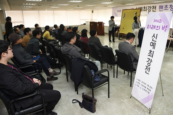 ▲목진석 9단의 해설과 문도원 3단의 진행으로 열린 공개해설회 전경미래의 별 신예최강전은 실전 대국이 적은 신예기사들에게 대국기회를 제공하려는 목진석 9단과 익명의 개인 후원으로 2015년 출범했다.