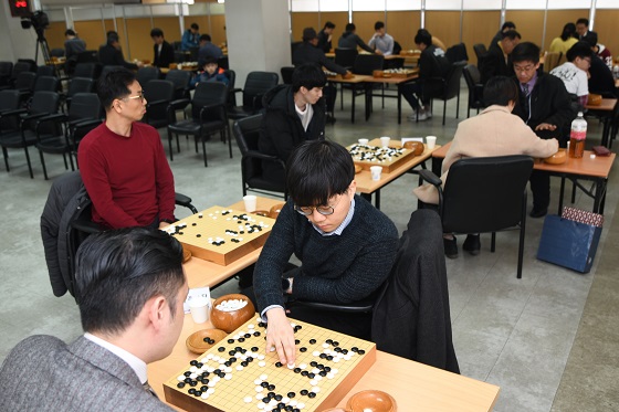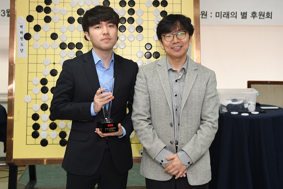 ▲한 달 사이에 2개 대회를 우승한 박하민 5단한편 오후 2시부터 한국기원 2층 대회장에서는 미래의 별 신예최강전 왕중왕전 팬 초청 이벤트가 열렸다. 사전 접수로 선정된 아마추어 바둑인 30명이 참가한 다면기에는 9명의 프로기사(목진석ㆍ안조영ㆍ홍민표ㆍ박정상ㆍ최정ㆍ신민준 9단, 김명훈 7단, 설현준 5단, 허서현 초단)가 팬들과 만났다.