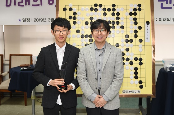 16일 서울 성동구 한국기원 바둑TV스튜디오에서 열린 제4기 미래의 별 신예최강전 왕중왕전에서 박하민 5단이 박상진 3단에게 250수 만에 백 불계승을 거두며 우승을 차지했다.