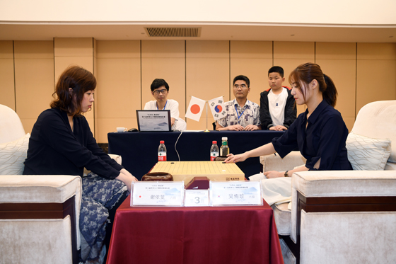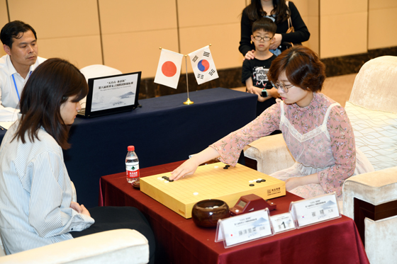 12일 중국 저장(浙江)성 타이저우(台州)시 천태산온천호텔에서 열린 제8회 천태산배 세계여자바둑단체전 3회전 최종일 경기에서 한국이 일본에 3-0으로 승리했다.