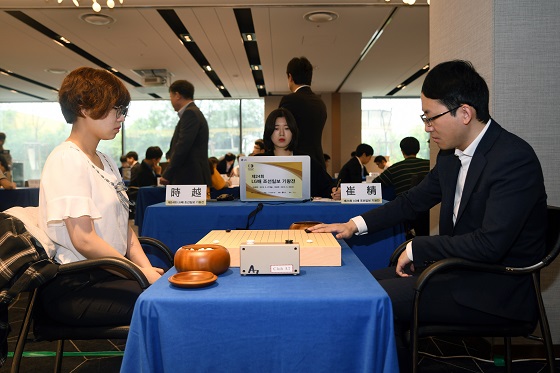 ▲최정 9단(왼쪽)이 스웨 9단에게 승리하며 상대전적 2전 전승을 기록했다