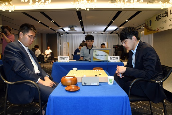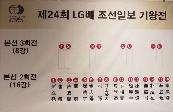 27일 경기도 김포시 마리나베이 호텔에서 열린 제24회 LG배 조선일보 기왕전 본선32강에서 10명의 태극전사가 출전한 한국은 5명이 중국 선수에게 승리하며 16강에 진출했다.
