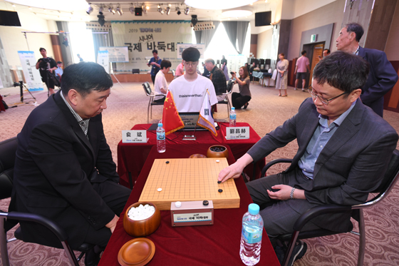 ▲양재호 9단(오른쪽)이 류샤오광 9단에게 승리하며 상대전적에서 1승 1패를 기록하게 됐다 개인전에 앞서 오전에 열린 단체전 첫날 경기에서는 한국이 중국에 2-1로 승리하며 첫승을 신고했다. 한국은 유창혁 9단이 위빈 9단, 양재호 9단이 류샤오광 9단을 꺾었다.