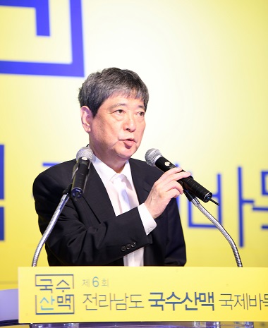 ▲대회사를 대독하고 있는 한상열 한국기원 부총재김영록 전라남도 도지사는 축사에서 “아름다운 천사섬, 신안에서 세계인의 바둑잔치, 제6회 국수산맥 국제바둑대회가 열려 진심으로 뜻깊게 생각한다”면서 “이번 대회가 바둑 발전은 물론 한국과 중국, 그리고 일본을 비롯한 아시아 여러 나라의 교류 증진에 보탬이 되기를 기대한다”고 말했다.