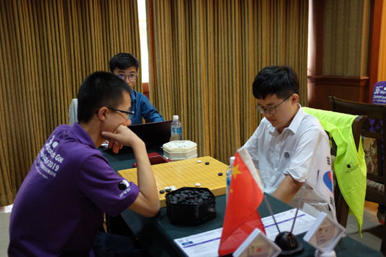 ▲세계 청소년바둑대회 시니어부 한국의 양유준(오른쪽) 대 중국 리하오퉁의 결승 장면