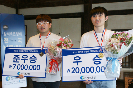 ▲최강부 우승을 거머쥔 김진휘 4단(오른쪽)과 최광호 2단의 시상식 장면 [자료사진]