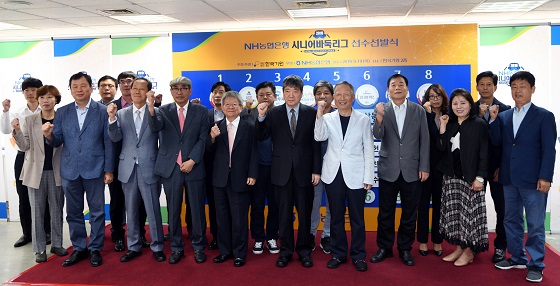 ▲시니어바둑리그 선수선발식 전경올해부터 NH농협은행이 타이틀 스폰서를 맡은 2019 시니어바둑리그는 지난 시즌보다 한 팀 증가한 8개 팀이 출전한다.