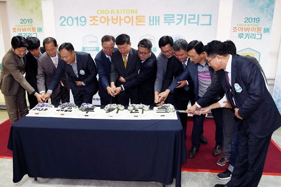▲내빈 및 각 팀 관계자들이 케이크 커팅식을 진행하고 있다.손준형 조아제약 전무이사는 “두 번째 조아바이톤배 루키리그 개막을 진심으로 축하하며 이번 대회에서 뜨거운 경합을 펼쳐줄 선수 여러분께 응원의 박수를 보낸다”며 “매 경기마다 뛰어난 집중력과 기억력으로 조아바이톤배 이름에 걸맞은 최고의 명승부를 펼쳐주시기 바란다. 저희 조아제약은 앞으로도 모든 국민들의 건강과 가정의 행복을 위해 본연의 사업인 좋은 약 만들기에 최선을 다하겠다”고 말해 큰 박수를 받았다.