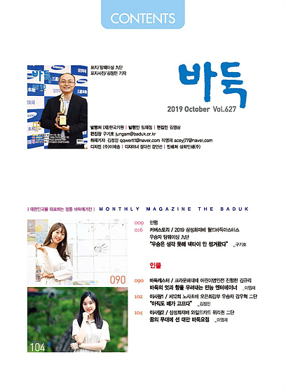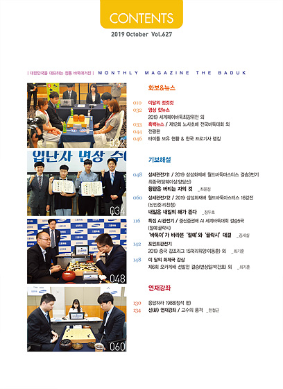 [칼럼/2019 삼성화재배를 지켜보며]에서 팝 칼럼니스트 김태훈 씨의 날카로운 안목을 엿볼 수 있고, 특집 [기자방담]을 통해 2019 삼성화재배의 비하인드스토리를 독자 여러분께 전격 공개한다.