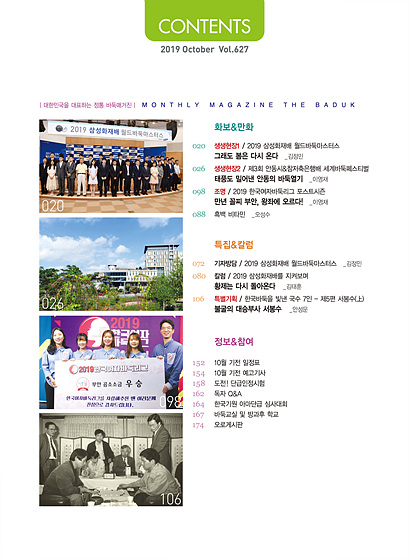 한국기원이 발행하는 국내 유일한 바둑매거진 월간『바둑』 10월호가 출간됐다. 10월호는 ‘변화와 혁신’의 기전 2019 삼성화재배 월드바둑마스터스 특집으로 구성됐다.