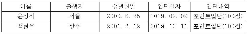 면장을 받은 입단자들의 약력은 다음과 같다.