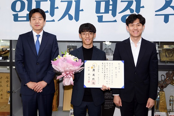 입단포인트 100점을 획득하며 입단한 윤성식·백현우 초단이 프로면장을 수여 받고 본격적으로 프로기사 생활을 시작했다.
