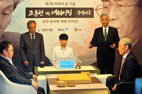 바둑 변방으로 평가받던 한국을 세계 최강국으로 만든 역사적인 대국을 30년 만에 재현한 이날 대국에는 특별히 추궈홍 주한중국대사가 김인 9단과 함께 공동심판장을 맡아 양웅의 재회를 축하했다.