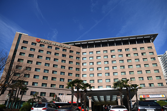 ▲제21회 농심신라면배 세계바둑최강전 본선 2차전이 벌어지고 있는 부산 농심호텔 외경