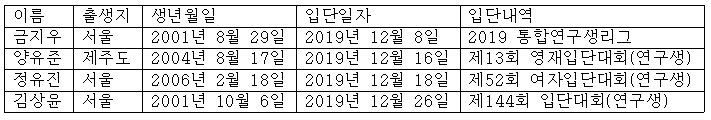 금지우 초단은 지난 12월 8일 종료된 2019 통합연구생리그에서 누적 점수 1위를 기록하며 입단했으며, 김상윤 초단은 지난 26일 제144회 입단대회(연구생)에서 입단했다. 양유준 초단은 지난 16일 제13회 영재입단대회(연구생)에서 입단했고, 정유진 초단은 지난 18일 제52회 여자입단대회(연구생)에서 수졸(守拙ㆍ초단의 별칭)에 올랐다.