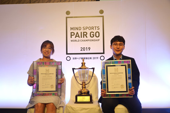 ▲최정 9단(왼쪽)과 박정환 9단이 2019 세계페어바둑 최강위전에서 대회 2연패에 성공하며 환상 호흡을 과시했다3위는 4억 5100만원의 상금을 차지한 최정 9단에게 돌아갔다.