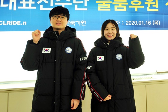 ▲클라이드앤 유니폼을 착용한 국가대표 나현 9단(왼쪽)과 오유진 7단바둑 국가대표팀(감독 목진석)은 16일 서울 성동구 한국기원에서 패션전문기업 (주)연승어패럴의 클라이드앤과 유니폼 후원 전달식을 가졌다.