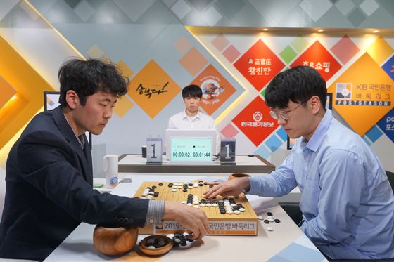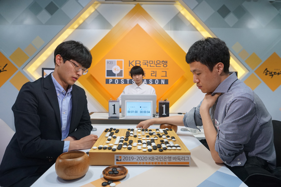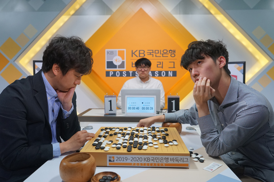 6일 서울 성동구 마장로에 위치한 한국기원 바둑TV스튜디오에서 벌어진 2019-2020 KB국민은행 바둑리그 와일드카드결정 2차전에서 정규리그 5위 포스코케미칼이 4위 홈앤쇼핑(감독 최규병)에 3-1로 승리했다.