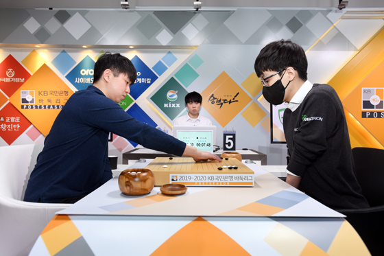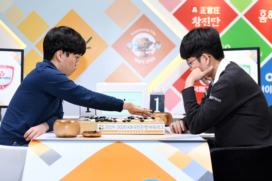 ▲신민준 9단(왼쪽)이 신진서 9단과의 '양신대결'에서 승리하며 팀의 우승을 확정지었다