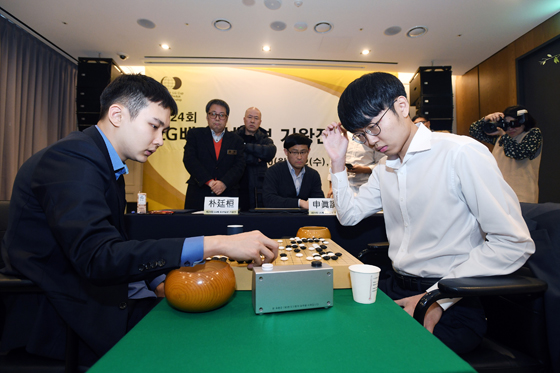 ▲24회 LG배 결승3번기에서 신진서 9단(오른쪽)이 박정환 9단을 2-0으로 꺾고 입단 후 첫 메이저 세계기전 우승을 거머쥐었다