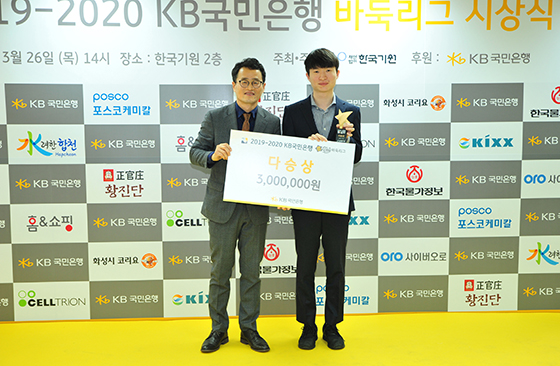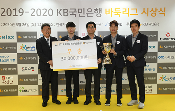 2019-2020 KB국민은행 바둑리그 시상식이 26일 서울 성동구 한국기원 2층 대회장에서 열렸다. 이날 시상식은 KB리그 우승과 개인상, 퓨처스리그 우승과 개인상에 대한 시상으로 1시간 동안 진행됐다.