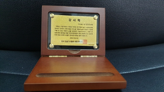 ▲지지옥션 강명주 회장에게 증정된 감사패