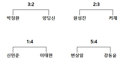 그러나 이후 대결에서는 한국 선수 3명이 모두 8강 티켓을 거머쥐었다.