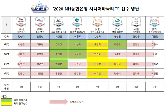 각 팀은 지난 19일 지역연고선수를, 23일에 보호선수를 사전지명했다.
