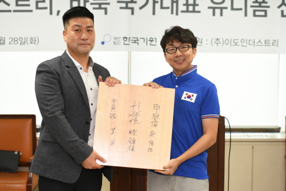 유니폼 전달에 앞서 이도인더스트리 정용태 이사는 “이도인더스트리가 바둑 국가대표 선수단을 후원할 수 있게 돼 기쁘게 생각하며 앞으로도 많은 지원을 통해 바둑 저변 확대에 기여할 수 있도록 노력하겠다”고 전했다.