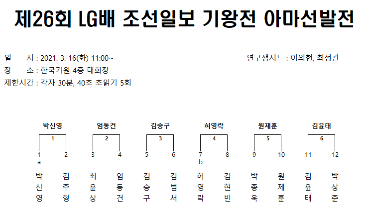 ▲ 제26회 LG배 조선일보 기왕전 아마선발전 대진표