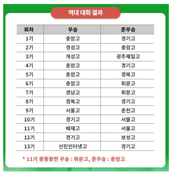 이번 대회 본선은 디펜딩챔피언 선린인터넷고와 준우승팀 경기고 등 전기 대회 16강 진출팀이 시드를 받아 본선에 직행했고, 지난해 11월 열린 예선을 통과한 16개 팀이 합류해 32강 토너먼트로 최종 챔피언을 가렸다.
