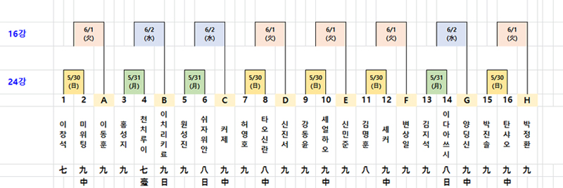 본선24강 추첨 결과와 대국일, 상대전적은 아래와 같다.