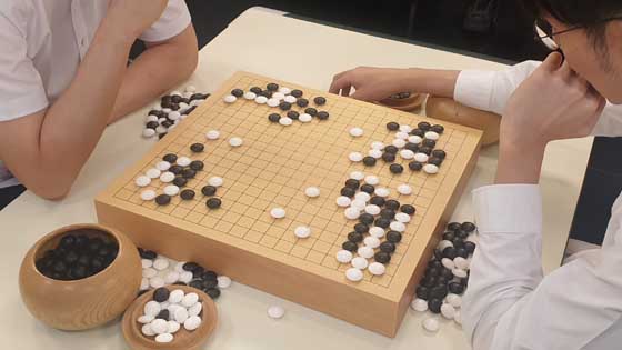 ▲신진서 9단(오른쪽)과 박정환 9단의 최종국 복기 장면. 최종국은 두 기사가 왜 세계 최강인지를 보여준 한판이었다