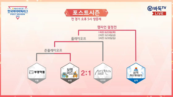 보령 머드의 사상 첫 2연패냐, 삼척 해상케이블카의 대회 첫 우승이냐를 가릴 챔피언결정전 1차전은 23일 막이 오른다. 2차전은 24일 열리며 1-1일 경우 최종 3차전은 26일 펼쳐진다.