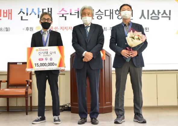 ▲아마연승대항전에서 우승한 신사팀, 김세현(왼쪽), 이철주(오른쪽) 선수가 대표로 참석했다.