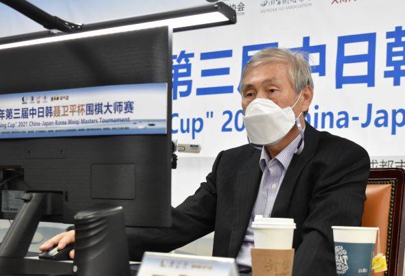 1일 서울 성동구 한국기원과 중국 청두시 대회장에서 온라인으로 열린 2021 한중일 녜웨이핑배 바둑마스터스 3라운드에서 한국이 중국에 3-2로 승리했다.