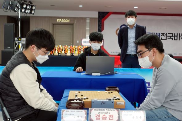 ▲ 성인 최강부 결승전, 김정현(왼쪽)이 온승훈을 꺾고 아마 정상에 올랐다.