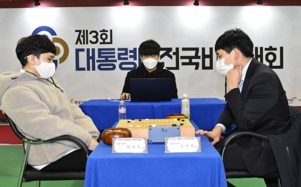 30일 경기도 화성 종합체육관에서 열린 제3회 대통령배 전국바둑대회 전문기사부 결승에서 한승주 8단이 김지석 9단에게 327수 만에 백 2집반승을 거뒀다.