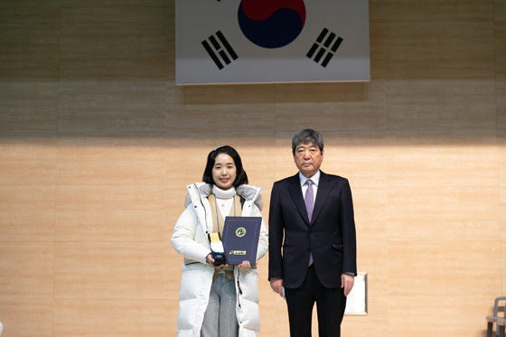 ▲여자개인부 우승자 송예슬 선수(왼쪽)와 시상을 담당한 한상열 한국기원 부총재가 나란히 자리했다