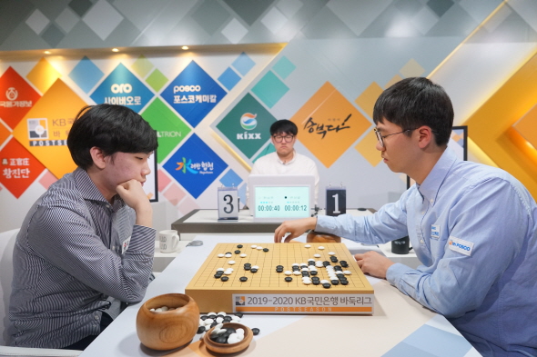 ▲두 사람의 마지막 대국은 2019-2020 KB국민은행 바둑리그 플레이오프 2차전으로 한승주 9단이 승리했다.
