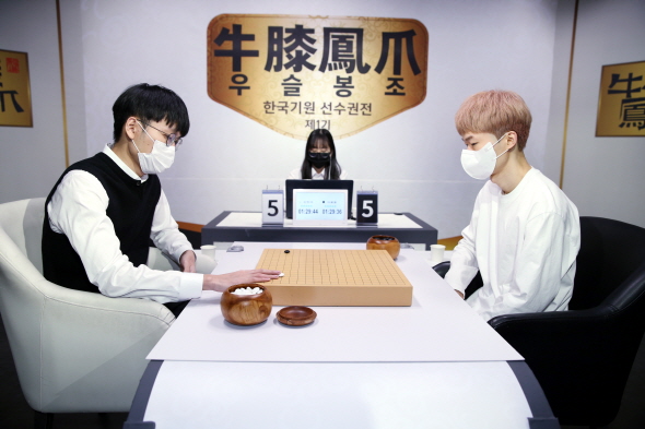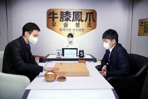 ▲박정환 9단은(왼쪽) 김지석 9단과의 최종 라운드에서 승리해 B조 1위에 올랐다.