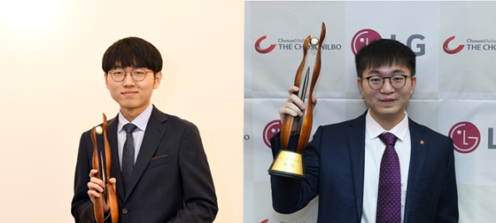 ▲24회 우승자 신진서 9단(왼쪽)과 23회 패자 양딩신 9단이 LG배 두 번째 우승에 도전한다