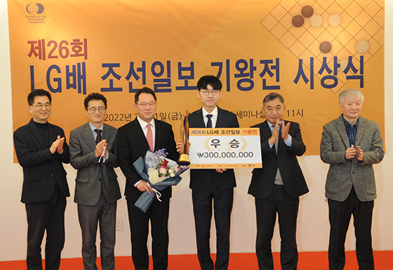 시상식에는 홍준호 조선일보 발행인과 정정욱 ㈜LG 전무, 주용태 조선일보 문화사업단장, 양재호 한국기원 사무총장 등이 참석해 2년 만에 LG배 통산 두 번째 우승에 성공한 신진서(22) 9단을 축하했다.