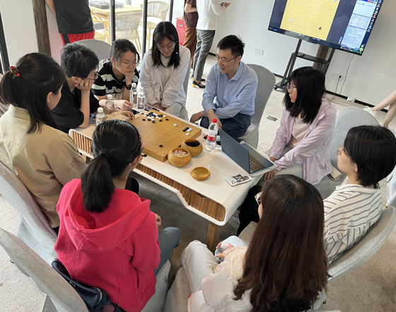 ▲중국 취저우 국제바둑문화교류센터에 모여 훈련 중인 중국 여자국가대표 선수단이 개막전을 함께 지켜봤다.