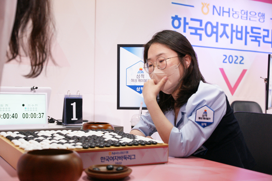29일 서울 성동구 한국기원 바둑TV스튜디오에서 열린 2022 NH농협은행 한국여자바둑리그 1라운드 4경기에서 삼척 해상케이블카 4지명 김수진 6단이 보령 머드 1지명 최정 9단에게 흑 반집승을 거두며 팀의 2-1 승리를 견인했다.