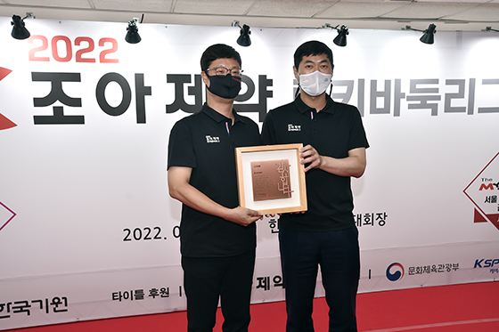 인사말 후에는 한종진 프로기사협회장이 바둑계를 대표해 조아제약에 감사패를 전달했다.